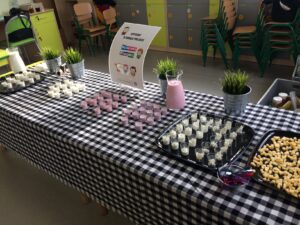 Mleczna Drużyna odwiedza przedszkole i przeprowadza zajęcia pod nazwą “Zdrowy dzień” czy “Mleczne laboratorium”. Są one dostosowane do wieku przedszkolaków – prowadzone w grupach 3 – 4 lat i 5 – 6 lat. Podczas zajęć “Zdrowy Dzień” grupy młodsze mają za zadanie stwierdzić, które produkty z worka przywiezionego przez Mleczną Drużynę są zdrowe, a które nie. Starszaki muszą przyporządkować wylosowane produkty do kategorii: nabiał, warzywa, mięso. Obie grupy dowiadują się, które produkty powinny się znaleźć w diecie przedszkolaków oraz w jakich proporcjach – zgodnie z aktualnymi zaleceniami dietetycznymi – należy spożywać dane grupy produktów. Na zajęciach “Mleczne laboratorium” przedszkolaki dowiadują się z czego jest zbudowane mleko i jakie ma wartości – starszaki mogą je nawet obejrzeć pod mikroskopem. Dzieci mają za zadanie ułożyć puzzle z sylwetkami mikrobohaterów i dowiedzieć się przy tym jakie witaminy i mikroelementy zawiera mleko oraz jak wpływają one na nasz organizm (każdy z bohaterów dba o jakąś część naszego ciała). W przedszkolu jest przygotowywany mleczny poczęstunek dla dzieci.