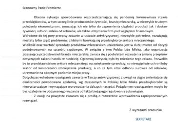 Dyrektor Biura Polskiej Izby Mleka, Agnieszka Maliszewska, skierowała pismo do Premiera Morawieckiego ws. wdrożenia rozwiązań dla przedsiębiorców