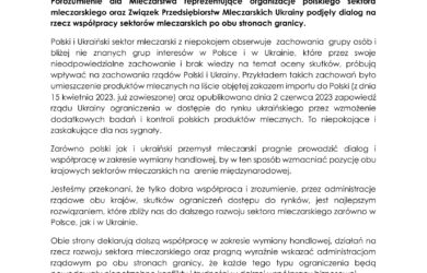 Wspólne stanowisko polskich i ukraińskich organizacji sektora mleczarskiego