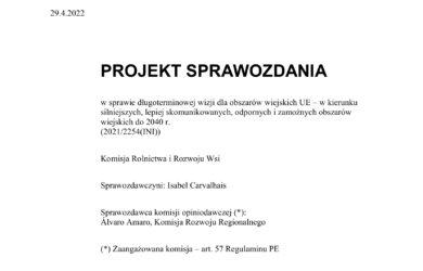 Komisja Rolnictwa i Rozwoju Wsi Parlamentu Europejskiego udostępniła projekt sprawozdania w sprawie długoterminowej wizji dla obszarów wiejskich