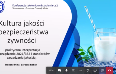 W dniu dzisiejszym tj. 15.12.2021 r. Polska Izba Mleka realizuje szkolenie online pt. Kultura jakości i bezpieczeństwa