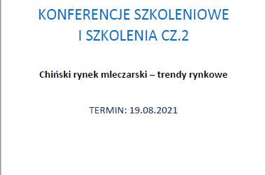 Zaproszenie na szkolenie online pt. Chiński rynek mleczarski – trendy