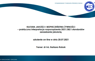 Szkolenie online pt. KULTURA JAKOŚCI I BEZPIECZEŃSTWA ŻYWNOŚCI – praktyczna