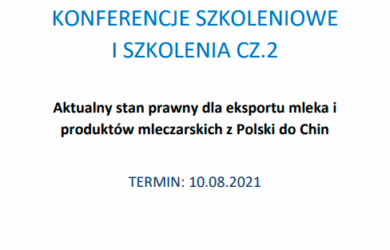 Polska Izba Mleka wychodząc naprzeciw oczekiwaniom społeczeństwa zaprasza na bezpłatne szkolenie online pt. Aktualny stan prawny dla