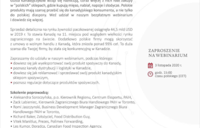 Do Polskiej Izby Mleka wpłynęło zaproszenie z Polskiej Agencji Inwestycji i Handlu do udziału w bezpłatnym webinarium