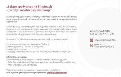 Zaproszenie na bezpłatne Webinarium – Sektor spożywczy na FILIPINACH –
