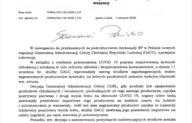 Pismo Zastępcy Głównego Lekarza Weterynarii w sprawie obostrzeń wprowadzonych przez