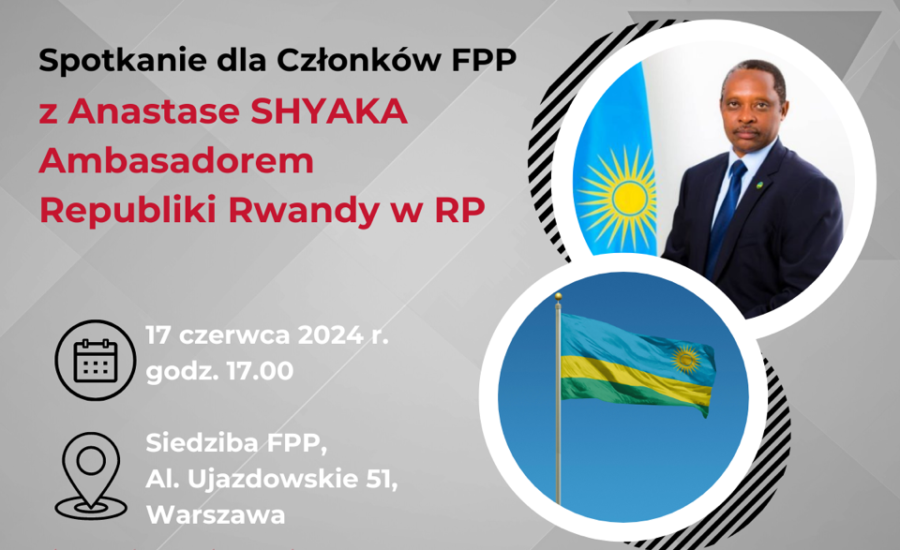 W imieniu Federacji Przedsiębiorców Polskich serdecznie zapraszamy firmy i organizacje członkowskie na spotkanie z Ambasadorem Rwandy Termin: 17 czerwca br. godz. 17.00Miejsce: online -> Dołącz do spotkania Spotkanie poprowadzi Marek Kowalski - Przewodniczący