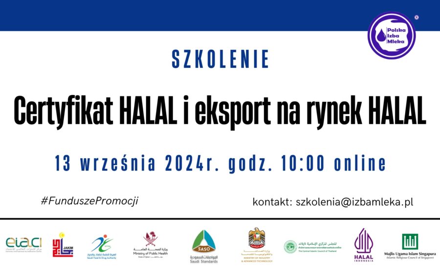 Serdecznie zapraszamy na szkolenie pn. „Certyfikat HALAL i eksport na rynek HALAL” które odbędzie się 13 września o godzinie 10:00 w formie online. Zgłoszenia prosimy przysłać do 12.09.2024 r. do godziny 15:30 na