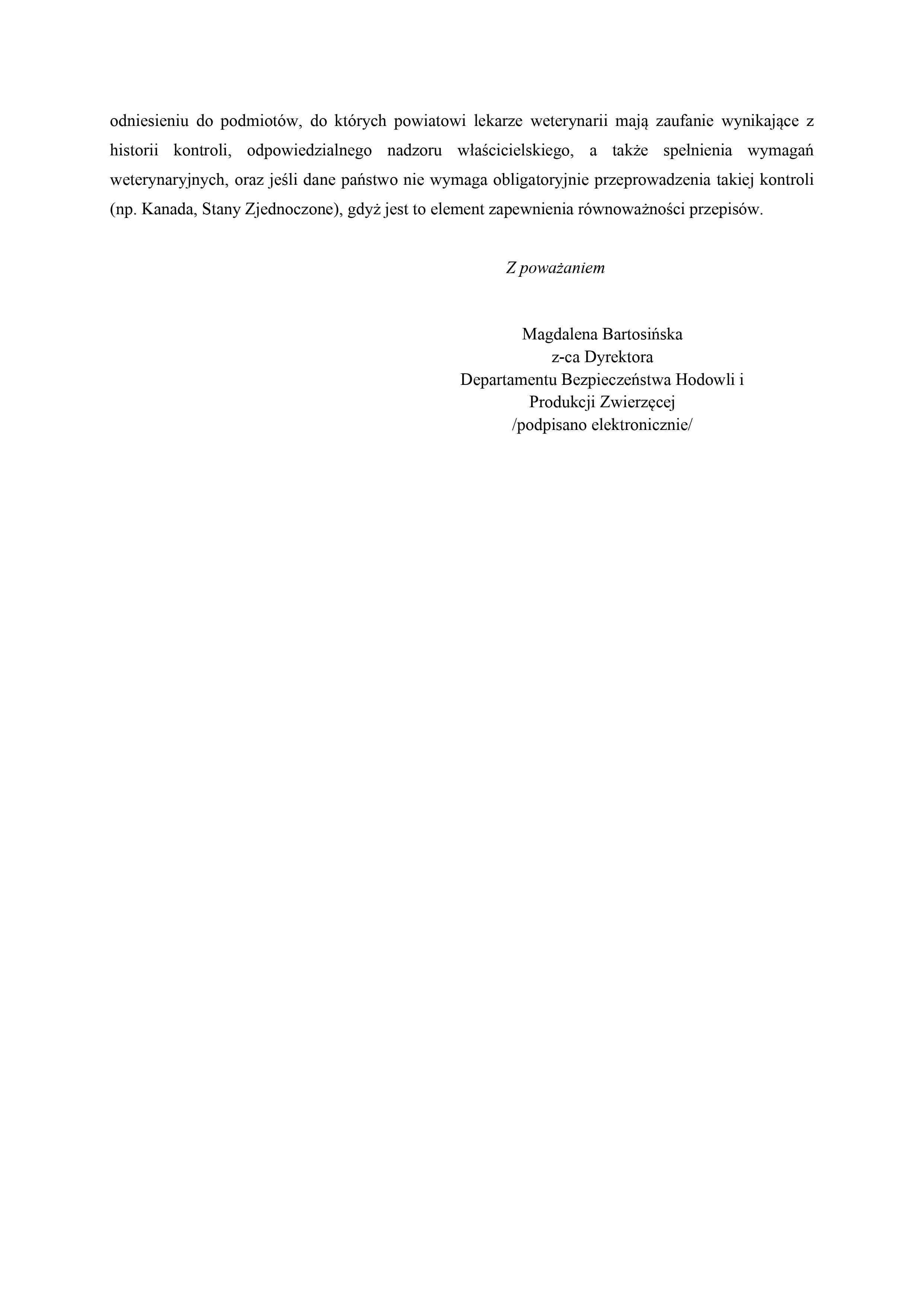 Odpowiedź MRiRW na pismo Polskiej Izby Mleka dot. o zaprzestaniz wszelkich kontroli zakładów przetwórczych mleka w związku z wystąpieniem w Polsce COVID-19,