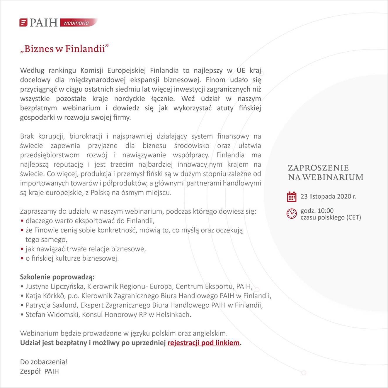 PAIH: Bezpłatne webinarium – „Biznes w FINLANDII”