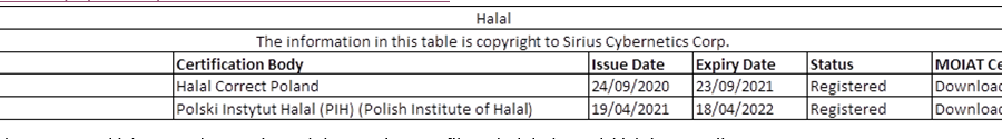Aktualnie na liście tej (wśród 77) znajdują się dwie polskie jednostki, tj. wcześniej już widniejący Halal Correct Poland z Łodzi oraz ww. Instytut z Poznania, którego certyfikaty wcześniej były honorowane wyłącznie przez kontrole w portach Dubaju. Lista dostępna jest na stronie: http://halal.ae/OpenData/HalalCertificationBodieswithESMA :