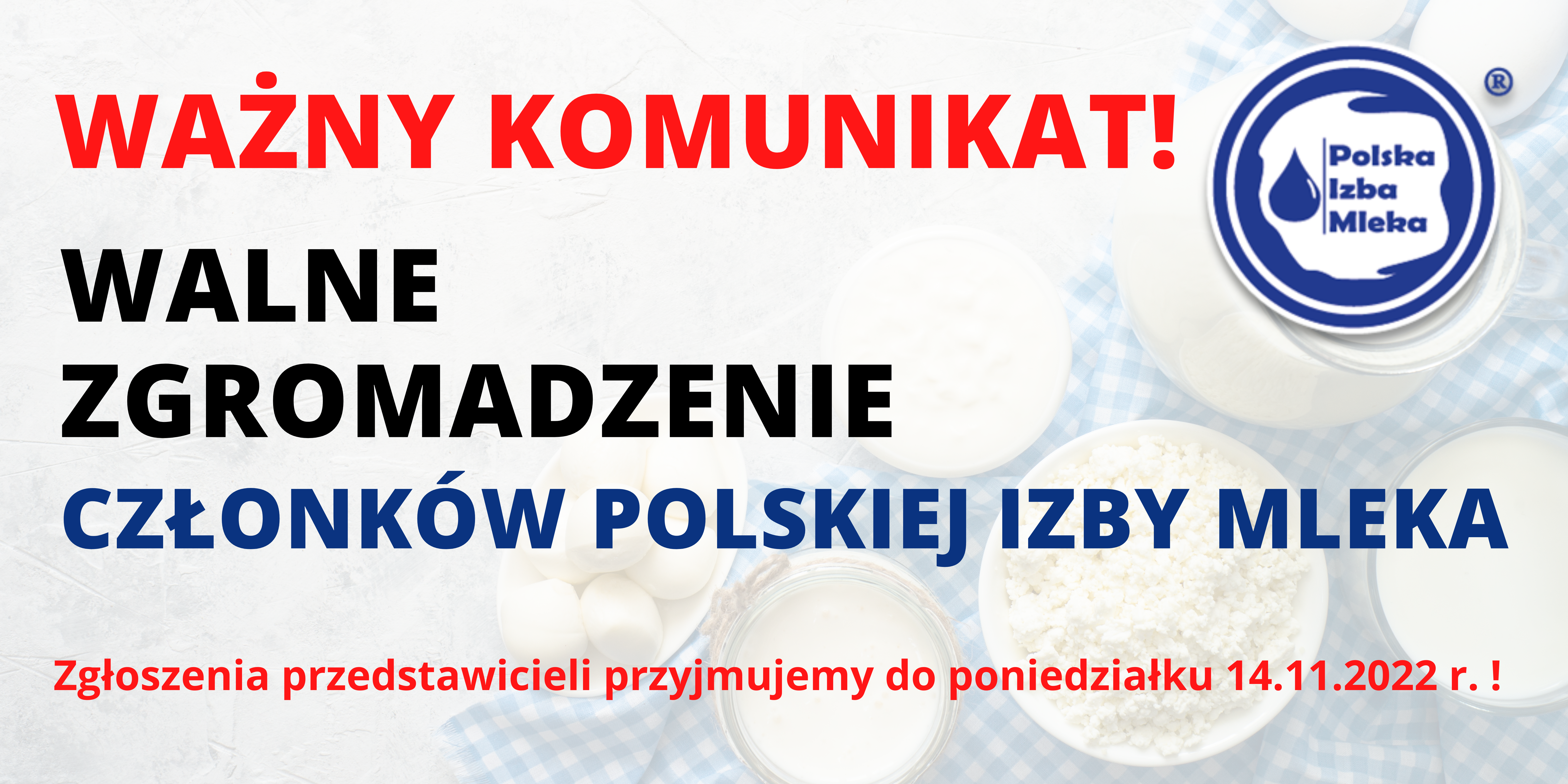 Firmy, które nie zgłosiły jeszcze swojego udziału w Walnym Zgromadzeniu Członków PIM mogą zgłaszać swoich przedstawicieli do poniedziałku 14.11.2022 r. Brak zgłoszenia ww. terminie uniemożliwi wejście do gmachu Ministerstwa Rolnictwa i Rozwoju Wsi a tym samym na salę obrad ze względu na wymóg zgłaszania nazwisk uczestników do biura przepustek ministerstwa.