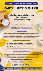 Zaproszenie do udziału w kolejnej konferencji z cyklu FAKTY I MITY O MLEKU, sfinansowanej z Funduszu Promocji Mleka