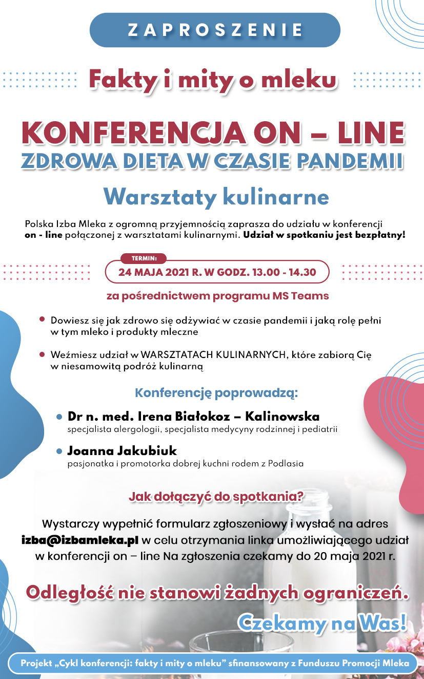 Zaproszenie do udziału w pierwszej konferencji z cyklu FAKTY I MITY O MLEKU, sfinansowanej z Funduszu Promocji Mleka